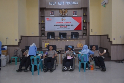 LANGSA – Dalam rangka memeriahkan Hari Ulang Tahun (HUT) ke-74 Humas Polri, Polres Langsa menggelar kegiatan donor darah yang berlangsung di Aula Mapolres Langsa, Rabu 22/10/2025.