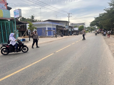 Polsek Rantau Selamat Gelar Strong Point Pagi di Jalan Medan–Banda Aceh