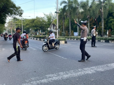 Selain melakukan pengaturan arus kendaraan, anggota Sat Lantas juga memberikan edukasi kepada para pengguna jalan tentang pentingnya tertib berlalu lintas demi keselamatan bersama. Upaya ini diharapkan dapat menumbuhkan kesadaran masyarakat agar selalu disiplin saat berkendara.