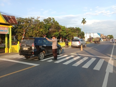 Petugas terlihat aktif membantu masyarakat yang melintas, khususnya para pelajar dan pengendara yang beraktivitas pada jam sibuk. Kehadiran polisi di lapangan bertujuan untuk mencegah kemacetan dan menekan angka pelanggaran lalu lintas di wilayah tersebut.