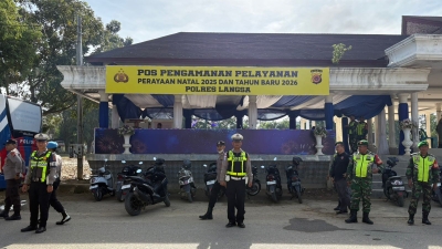 Langsa— Dalam rangka mendukung kelancaran pengamanan perayaan Natal 2025 dan Tahun Baru 2026, Polres Langsa melaksanakan kegiatan Pos Pengamanan (Pos Pam) Operasi Lilin Seulawah 2025 di kawasan Lapangan Merdeka Langsa pada Rabu, 31 Desember 2025.