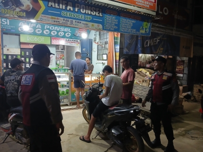 Kegiatan patroli tersebut difokuskan pada pemantauan aktivitas masyarakat yang masih berlangsung pada malam hari, sekaligus memastikan kondisi keamanan lingkungan berada dalam keadaan aman dan terkendali.
