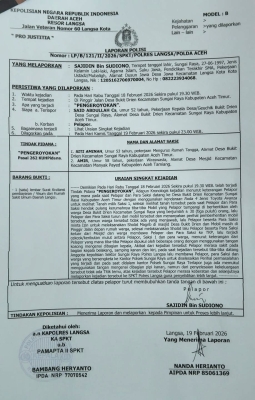 Kapolres Langsa Mughi Prasetyo Habrianto, S.I.K., melalui Kasi Humas Polres Langsa Iptu Rusdianto menyampaikan bahwa laporan terkait peristiwa tersebut telah diterima dan saat ini sedang dalam proses penanganan oleh pihak kepolisian. Laporan resmi tercatat dengan Nomor: LP/B/121/II/2026/SPKT/POLRES LANGSA/POLDA ACEH dan diterima pada Kamis, 19 Februari 2026.