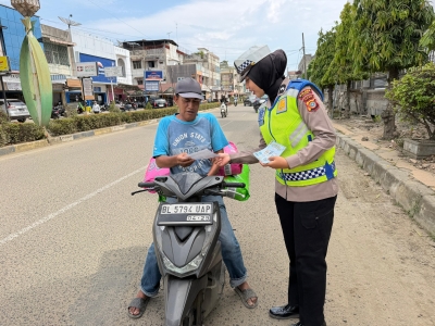 Satlantas Polres Langsa Edukasi Pengguna Jalan Lewat Pembagian Brosur Tertib Berlalu Lintas