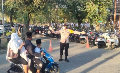 Selain melakukan pengamanan di dalam dan sekitar area masjid, personel kepolisian juga melakukan pemantauan situasi di lingkungan sekitar guna mengantisipasi potensi gangguan kamtibmas yang dapat mengganggu jalannya kegiatan.