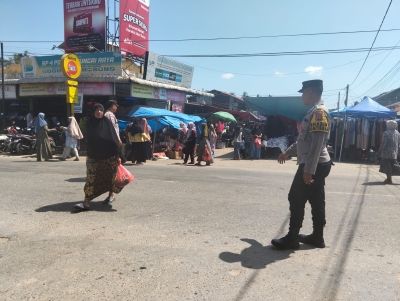 Dalam pelaksanaannya, petugas melakukan pengaturan arus kendaraan guna mengurai kepadatan serta memastikan kelancaran lalu lintas sehingga aktivitas masyarakat di kawasan pasar dapat berjalan dengan tertib dan aman.