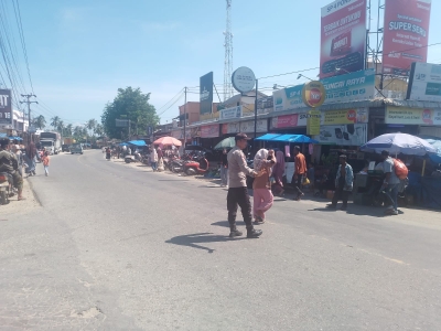 Pengaturan lalu lintas difokuskan pada area simpang strategis yang menjadi pusat mobilitas warga, baik pengguna kendaraan roda dua maupun roda empat, serta masyarakat yang melakukan aktivitas jual beli di kawasan pasar tradisional, sehingga kehadiran aparat kepolisian mampu memberikan rasa aman dan nyaman.