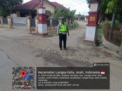 Langsa— Dalam rangka memastikan keselamatan pengguna jalan serta menjaga kelancaran arus lalu lintas pasca bencana banjir yang mengakibatkan kerusakan pada sejumlah ruas jalan, Satuan Lalu Lintas Polres Langsa melaksanakan kegiatan peninjauan langsung ke beberapa titik terdampak sebagai langkah preventif guna mengantisipasi potensi kecelakaan lalu lintas di wilayah hukum Polres Langsa. Senin (20/04/2026).